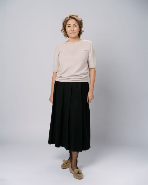 Окончила с отличием Казахскую национальную академию искусств имени Т. К. Жургенова (КазНАИ)